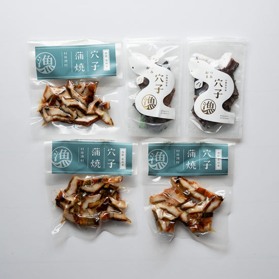 真穴子(浜田産)、砂糖、食塩、水飴、醤油(大豆、小麦を含む)、清酒、味醂 / 調味料(アミノ酸等)、ゼラチン、増粘多糖類、着色料(カラメル、紅) )麹)、pH調整剤