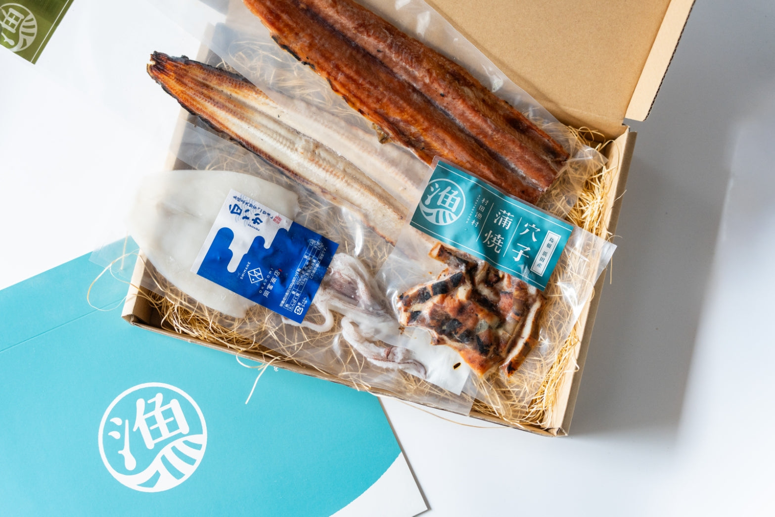 村田漁村の国産真穴子×岡富商店の白いか 一夜干し コラボギフト