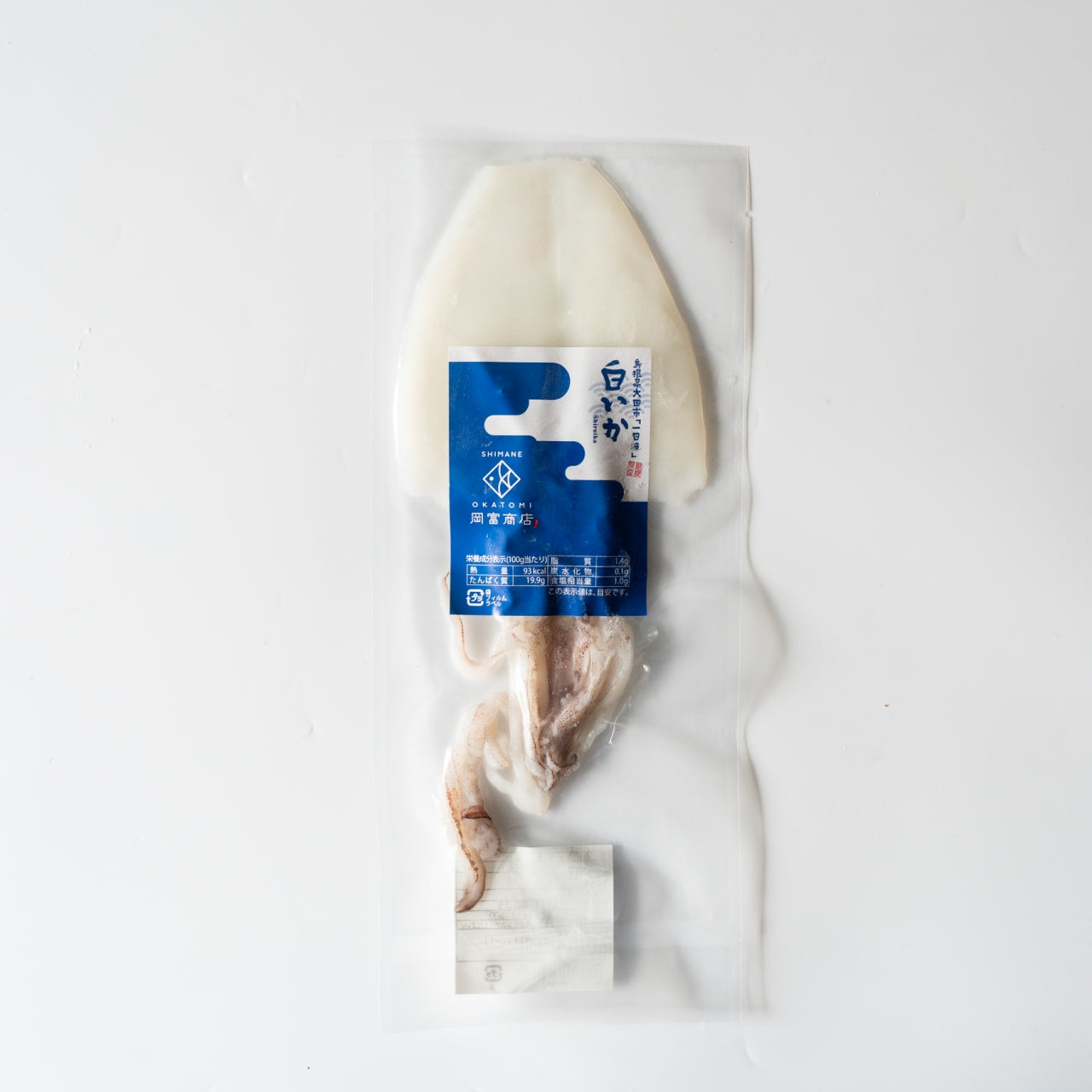 岡富商店さまの前日まで日本海を泳いでいた新鮮な白いかを、天日塩のみで仕上げた一夜干しでお届けします。